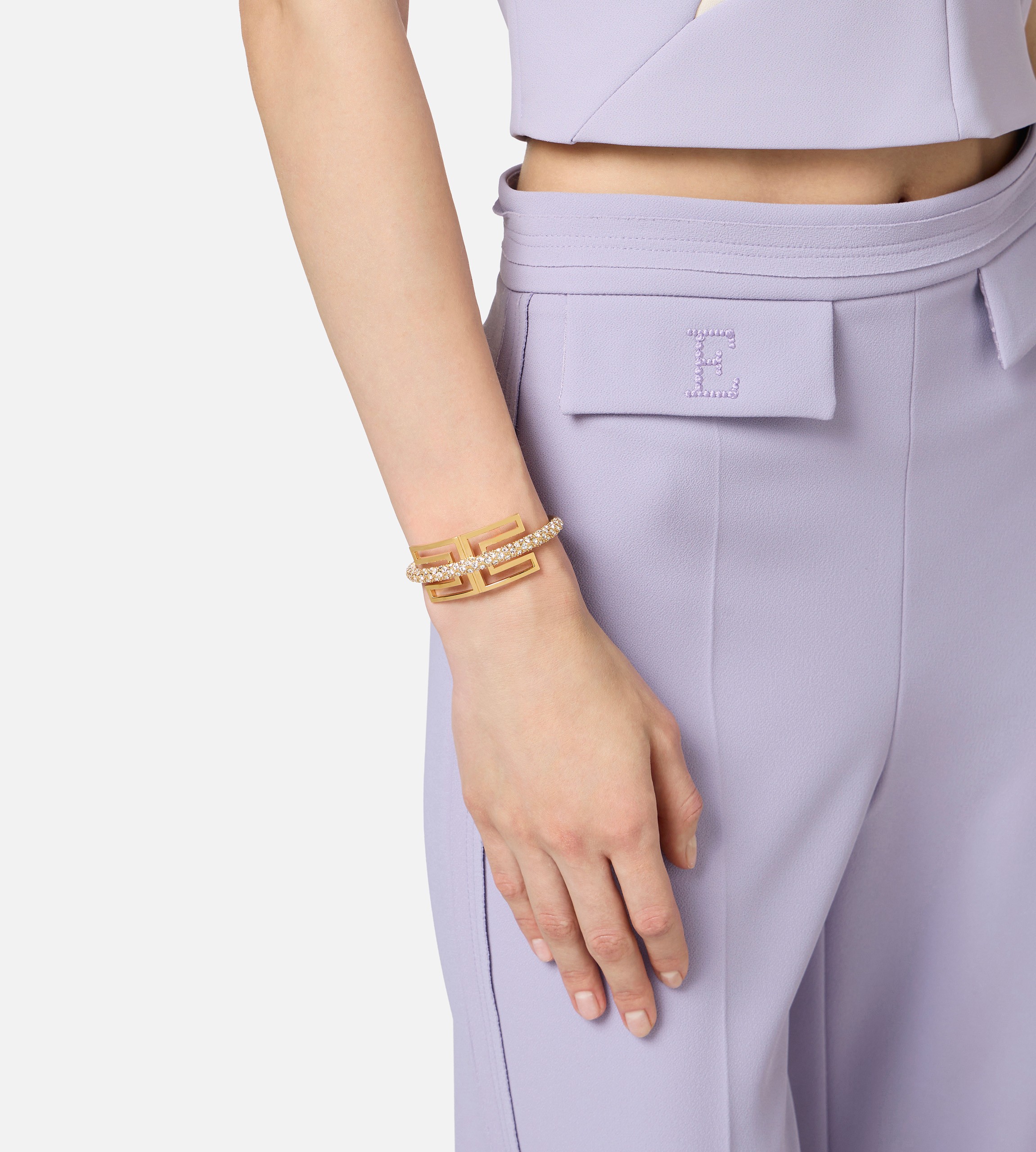 Bransoletka ELISABETTA FRANCHI wykonana z metalu ze złoconym wykończeniem. Okrągły wzór odtwarza kształt logo, ozdobiony aplikacją z kryształków.