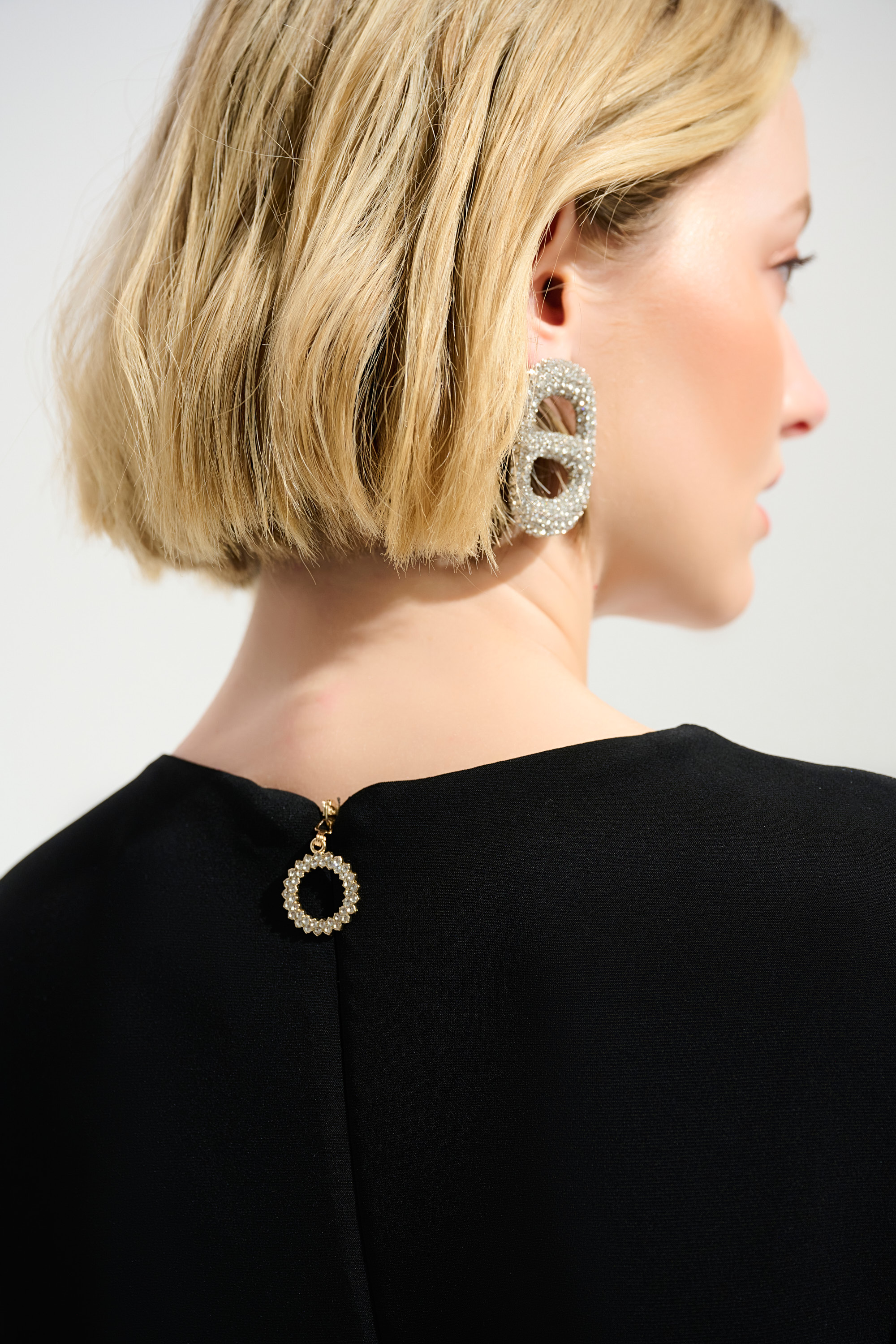 Kombinezon JOSEPH RIBKOFF o długości do kostek, harmonijne połączenie kobiecej elegancji i nowoczesnej elegancji. Kombinezon z paskiem, podkreślającym figurę dekoltem w serek i stylowymi bufiastymi krótkimi rękawami, zdobiony jest klejnotami, dzięki czemu idealnie nadaje się na oficjalne okazje lub wieczorne wyjście. Zachwyć się urokiem tego ponadczasowego modelu i zrób niezapomniane wrażenie, gdziekolwiek się pojawisz.