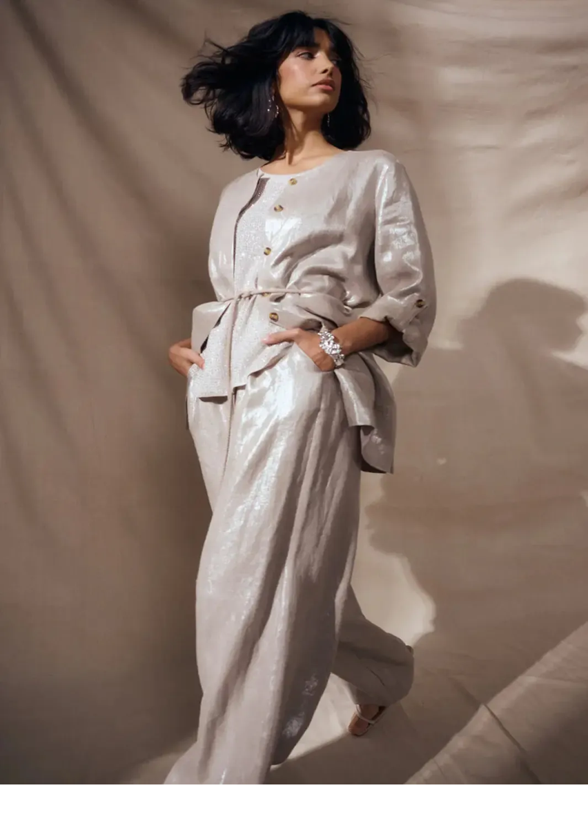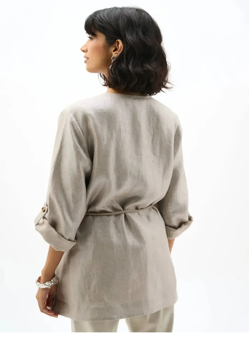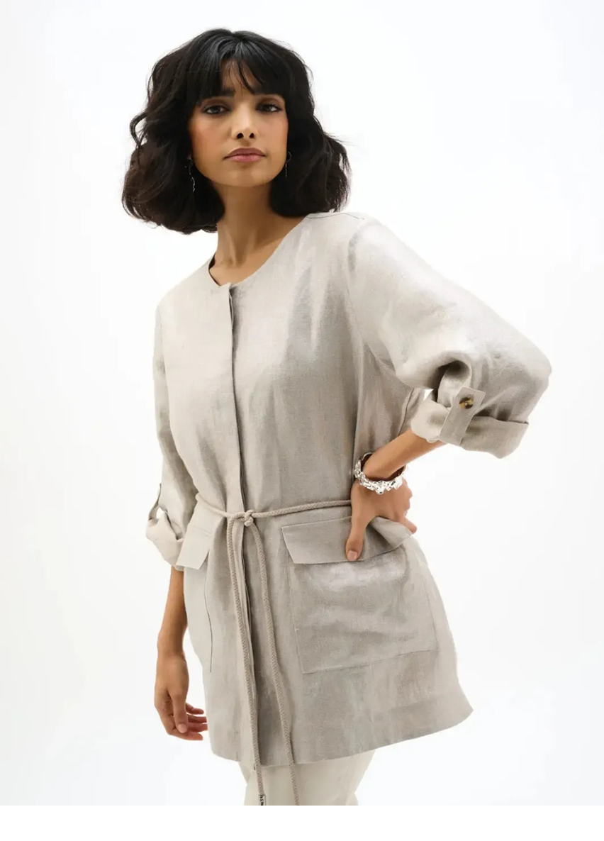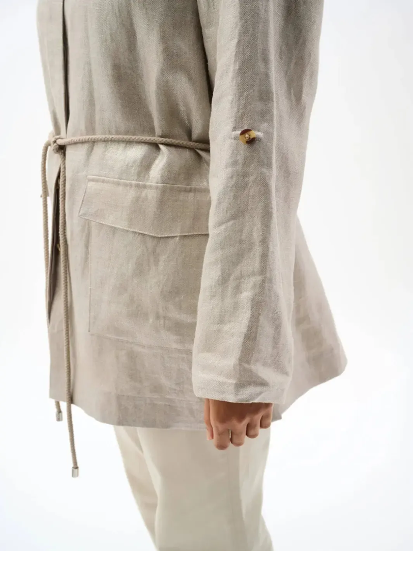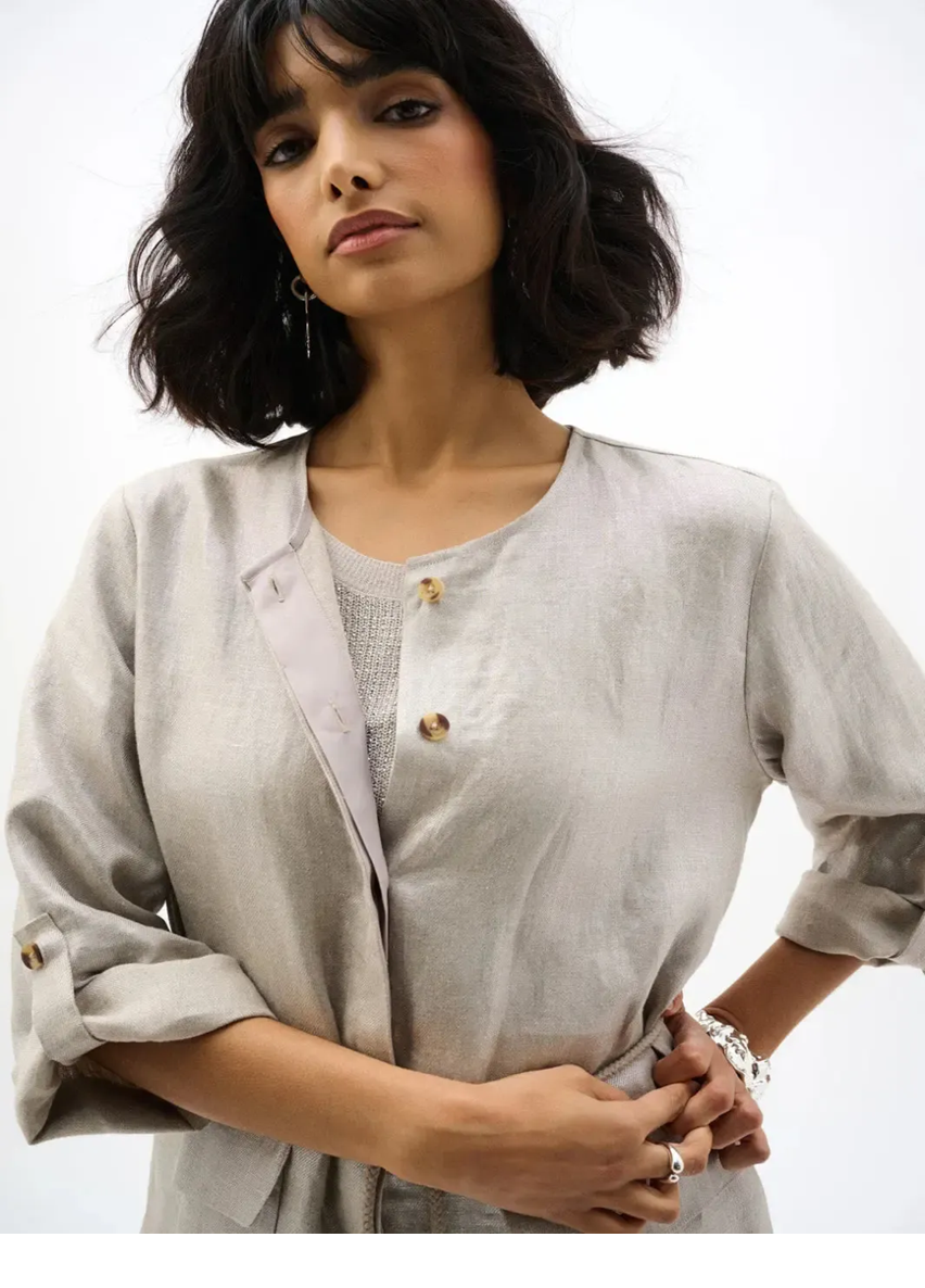 Marynarka JOSEPH RIBKOFF w nowoczesnym, swobodnym stylu. Wykonana z lekkiej tkaniny z domieszką lnu, ta kurtka ma przewiewną, miękką konstrukcję, która zapewnia wygodę, a jednocześnie zachowuje schludny, dopasowany krój. Minimalistyczny design podkreśla regulowany pasek w talii, który pozwala ją dopasować do sylwetki lub nosić luźno, aby uzyskać luźniejszą sylwetkę.
