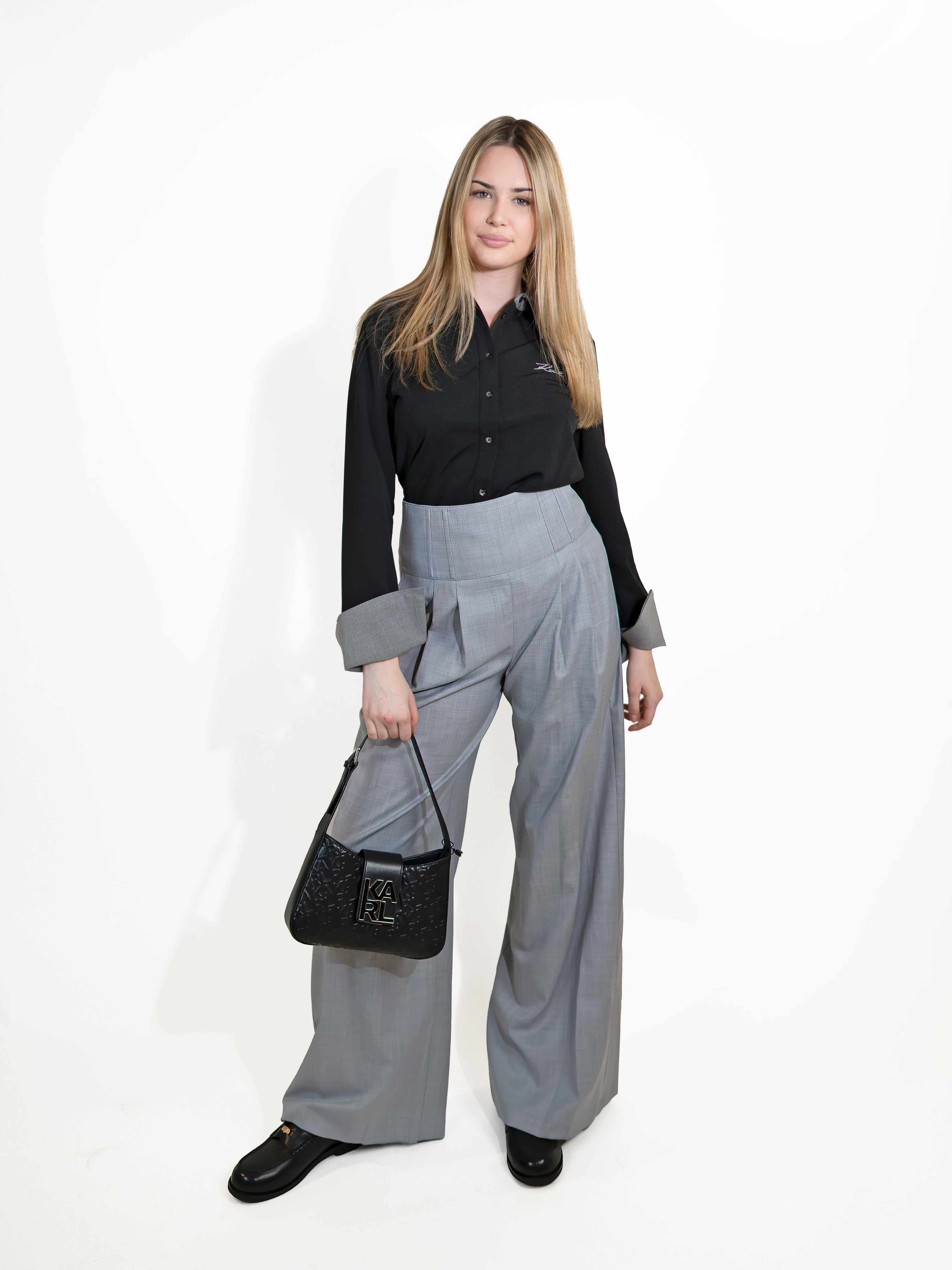 KARL LAGERFELD - KOSZULA Z SZARYM KOŁNIERZYKIEM