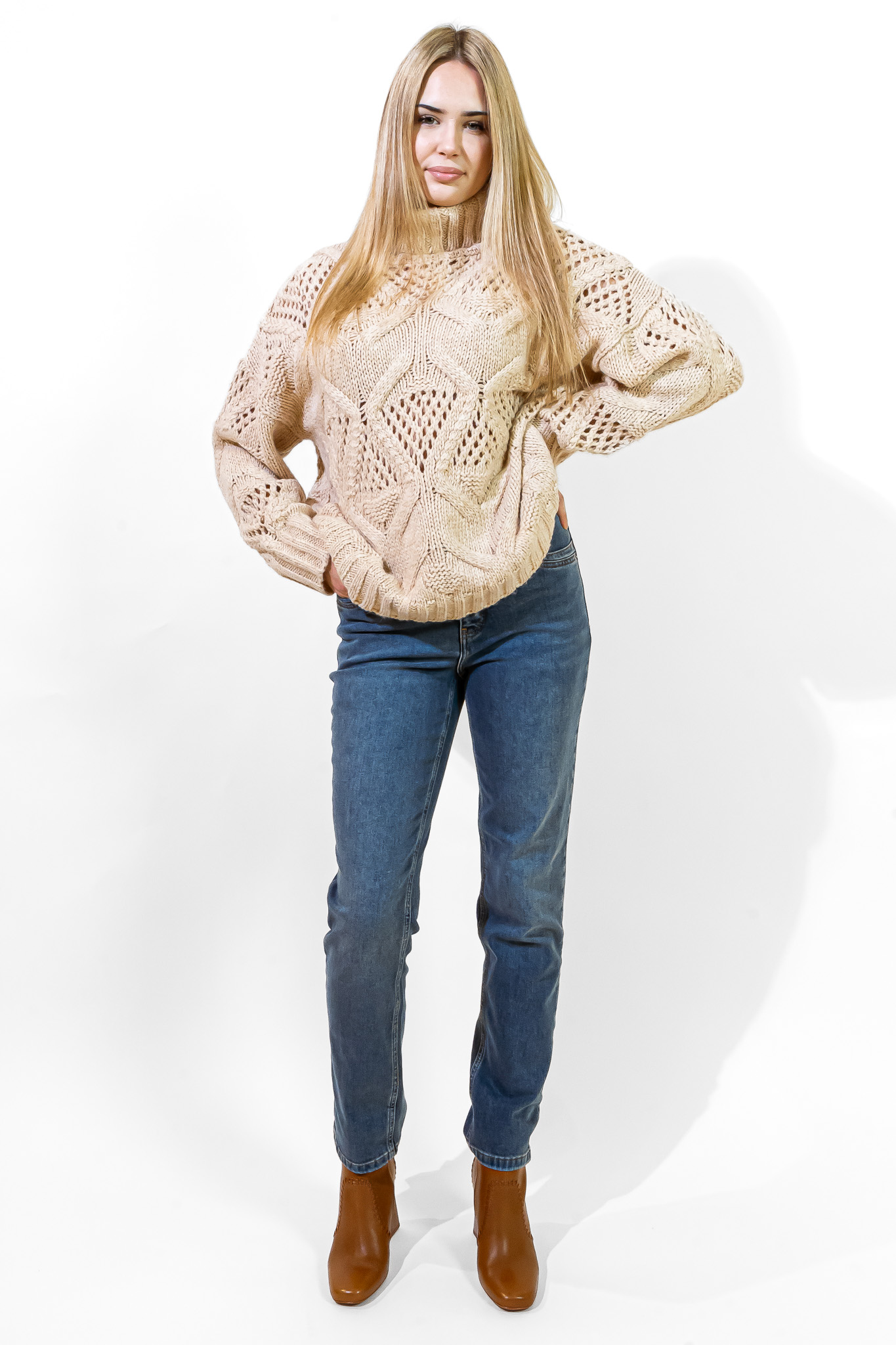MARC AUREL - SWETER Z AŻUROWYM SPLOTEM