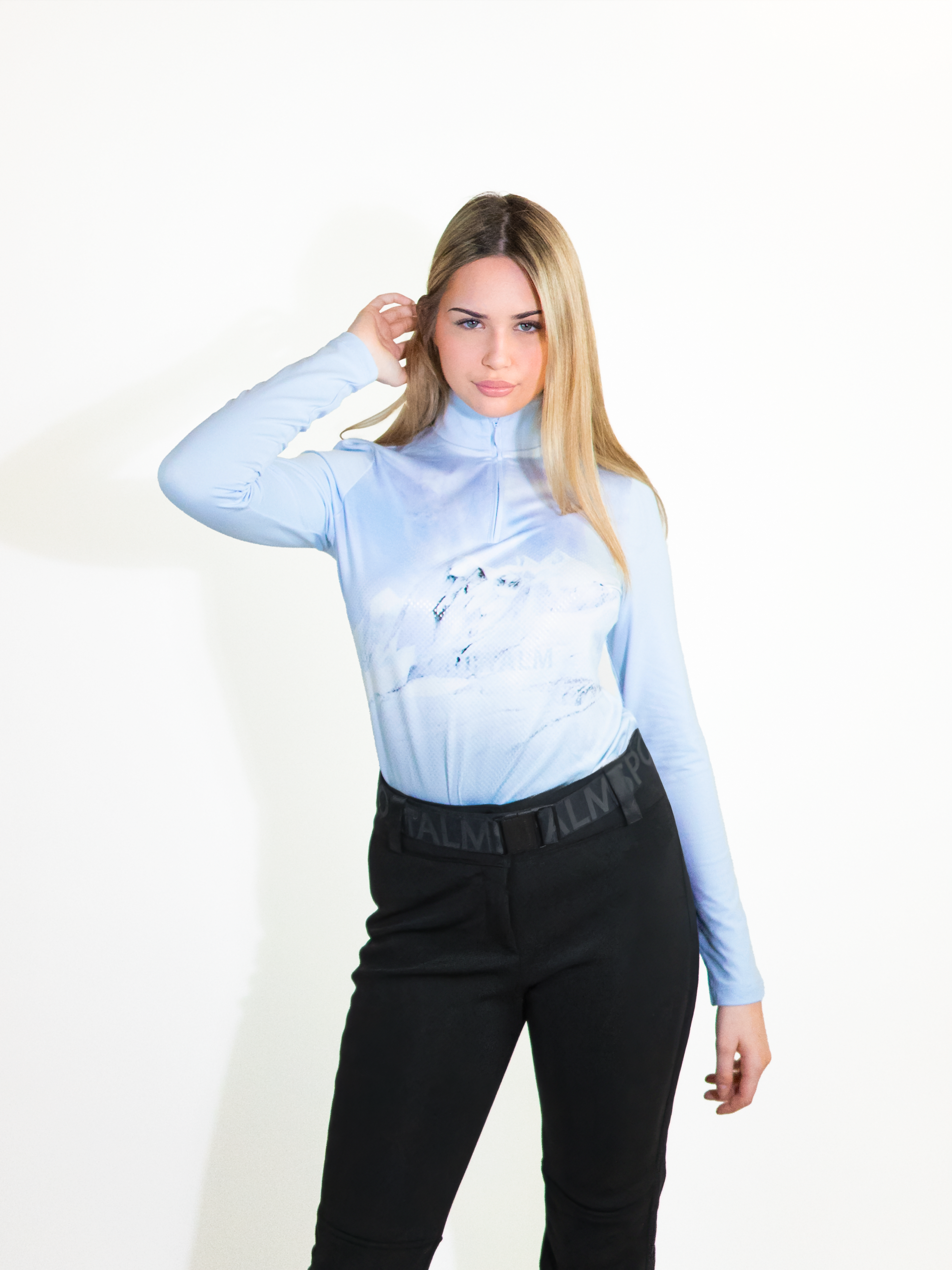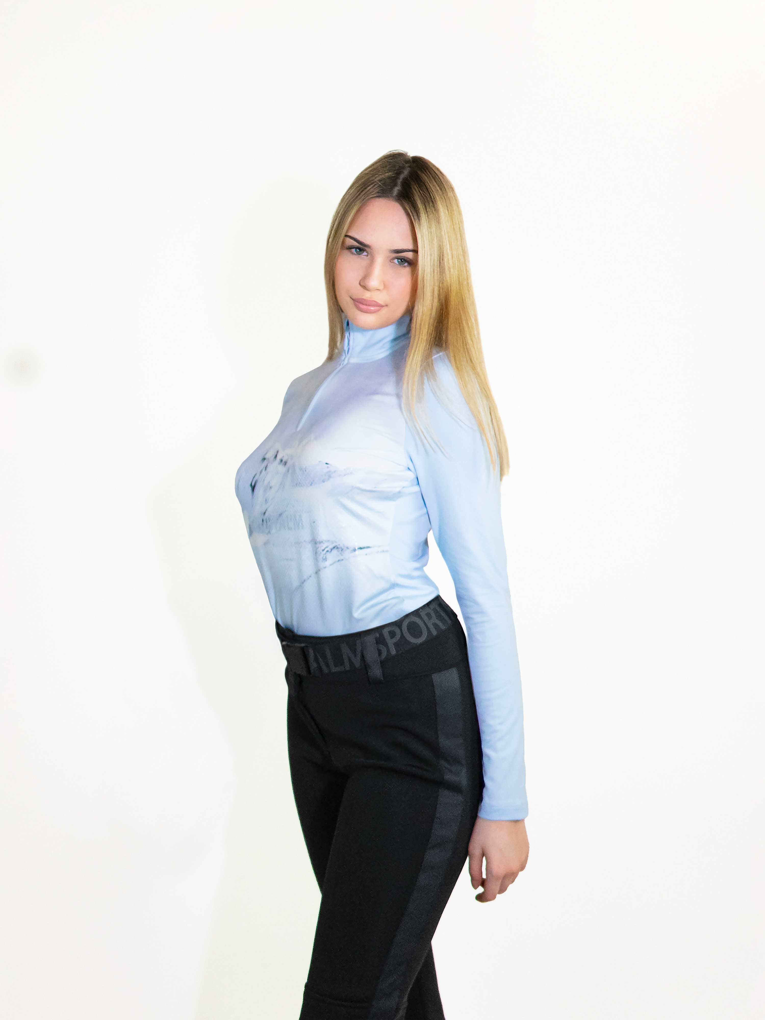 Ta bluza SPORTALM ze stójką zachwyca zapierającym dech w piersiach nadrukiem zimowego krajobrazu,
